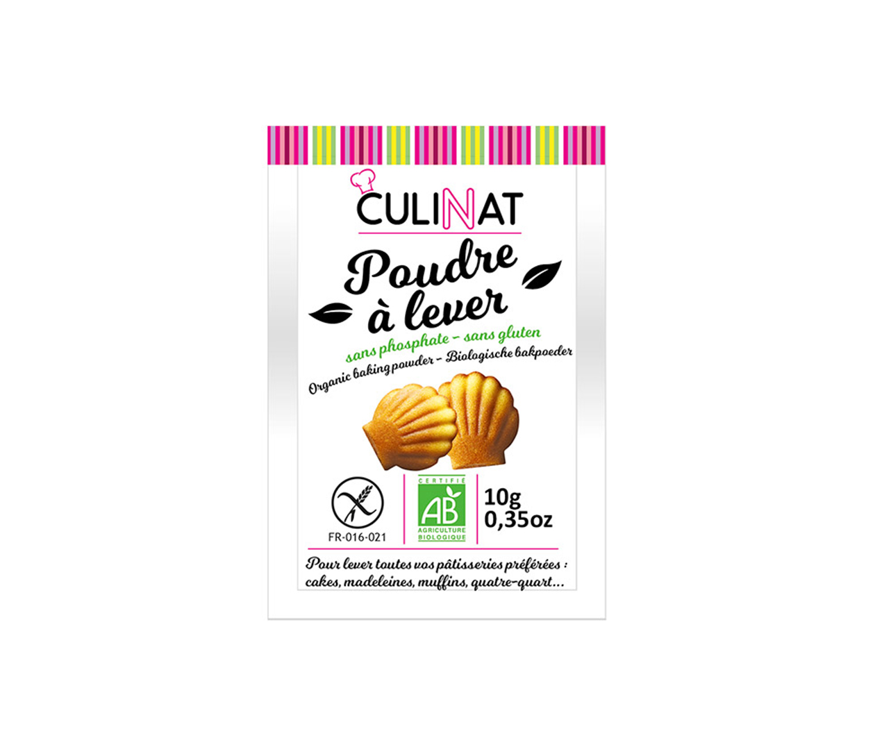 Poudre à lever sans phosphate et sans gluten bio, parfaite pour donner de la hauteur à vos gâteaux, muffins, cakes et leur donner une texture moelleuse. Sans gluten, à base d’amidon de maïs issu de l’agriculture biologique. 8 sachets de 10 g.