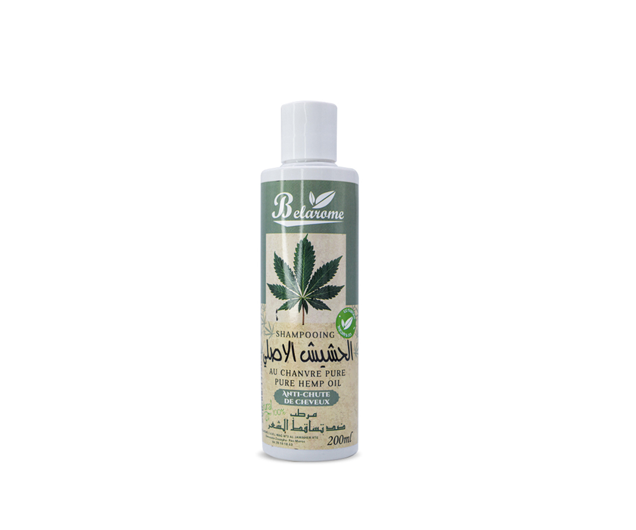 Belarôme Shampoing chanvre , Anti-Chute,chanvre naturel est riche en acides gras essentiels (AGE) et en oméga 3, 6 et 9, essentiels pour des cheveux d’apparence saine, flacon plastique avec emballage carton, 200ml, Shampooing Fortifiant Produit fabriqué en Belarôme maroc Cosmétique naturel.